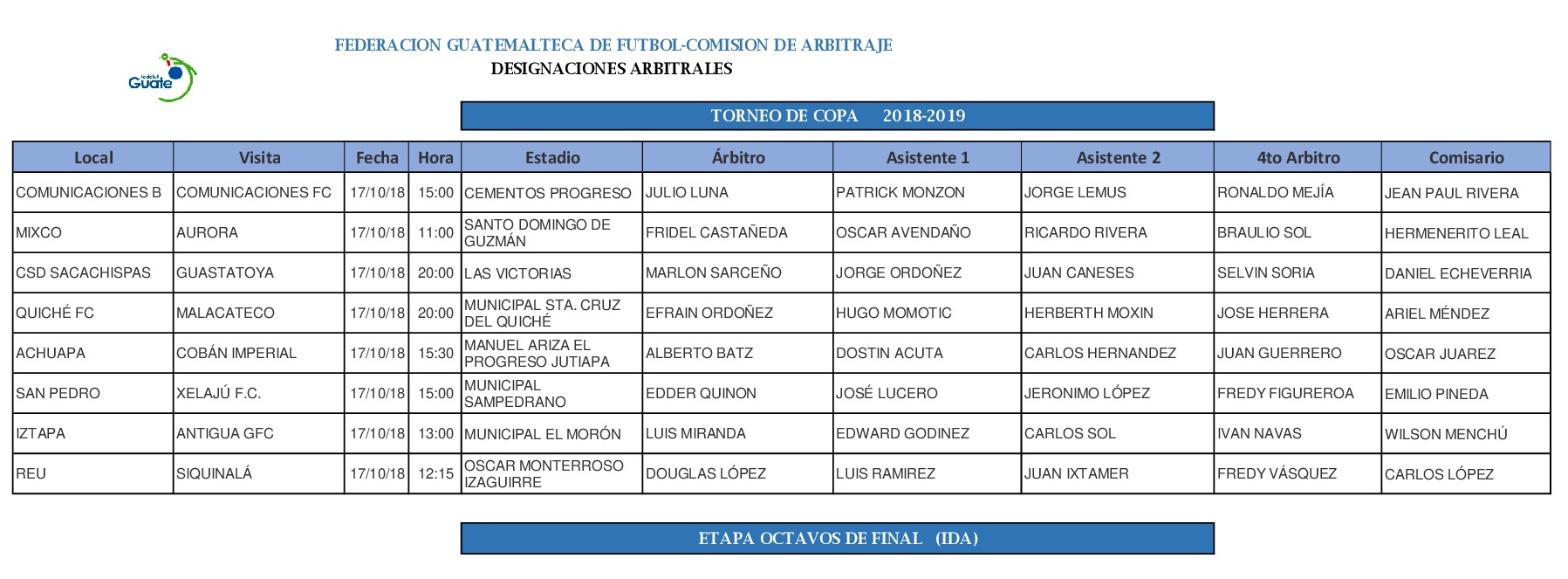 TORNEO DE COPA / NOMBRAMIENTOS ARBITRALES FASE OCTAVOS DE FINAL / JUEGOS DE IDA