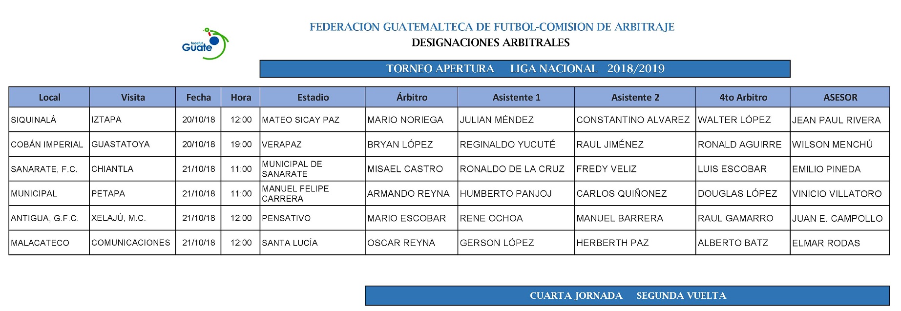 LIGA NACIONAL / NOMBRAMIENTOS ARBITRALES / JORNADA No. 15 / TORNEO APERTURA 2018/2019