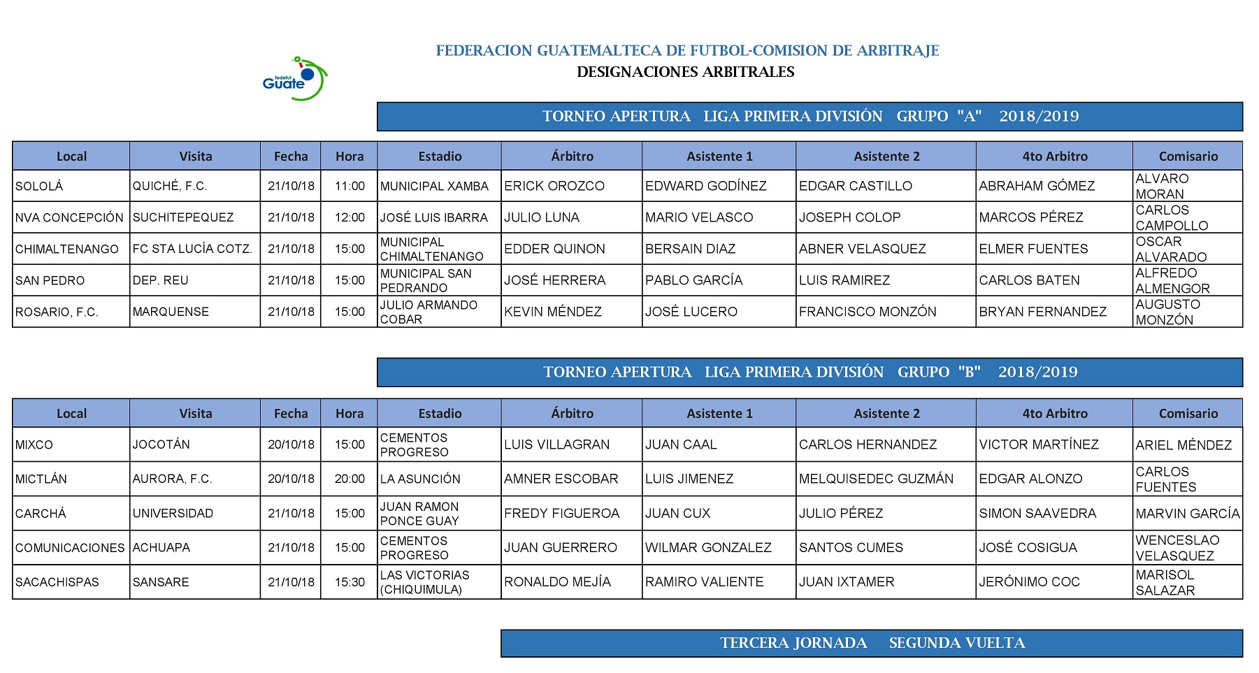 PRIMERA DIVISION / NOMBRAMIENTOS ARBITRALES JORNADA No. 12 / TORNEO APERTURA 2018-2019
