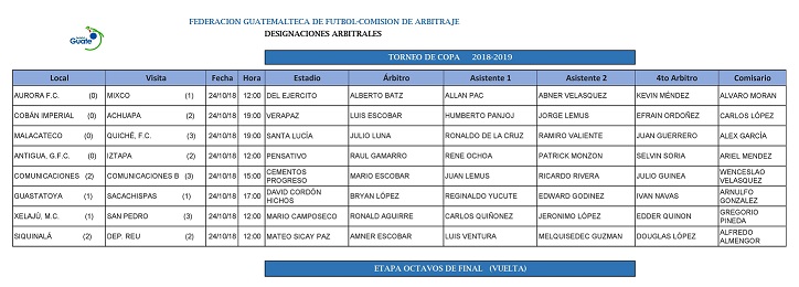 TORNEO DE COPA / NOMBRAMIENTOS ARBITRALES FASE OCTAVOS DE FINAL / JUEGOS DE VUELTA