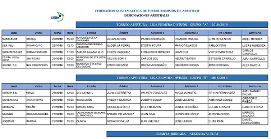 PRIMERA DIVISION / NOMBRAMIENTOS ARBITRALES JORNADA No. 13 / TORNEO APERTURA 2018-2019