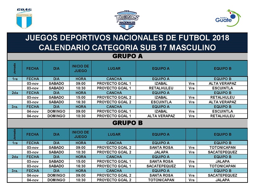 El fin de semana la Categoría Sub 17 masculina dará inicio con los grupos A y B en la rama masculina, con el siguiente calendario de juegos: