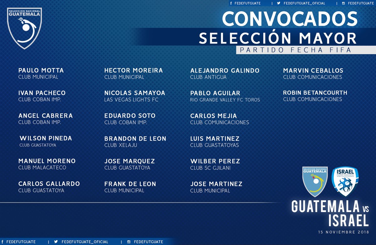 CONVOCATORIA SELECCION NACIONAL DE GUATEMALA / FECHA FIFA / ISRAEL vs. GUATEMALA