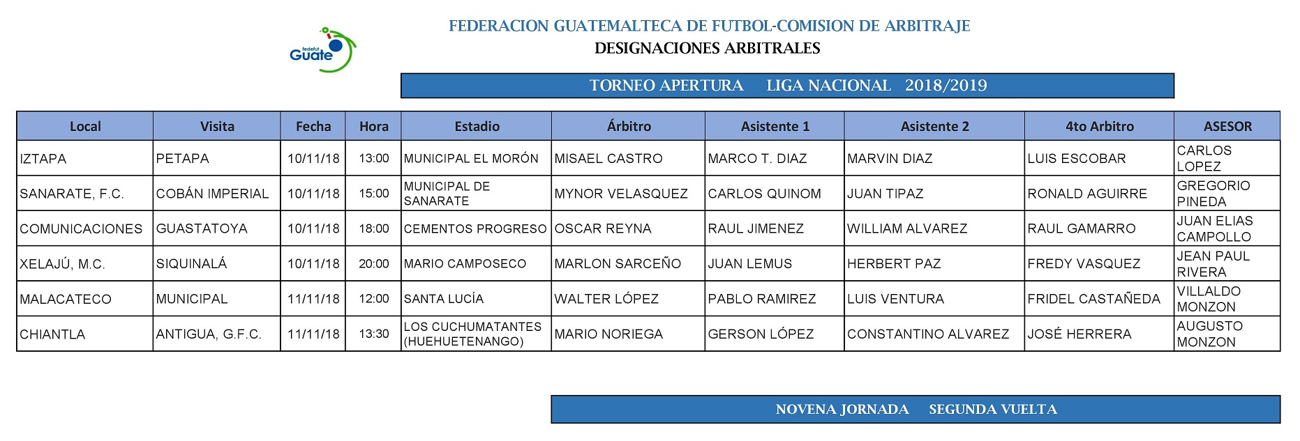 LIGA NACIONAL / NOMBRAMIENTOS ARBITRALES / JORNADA No. 20 / TORNEO APERTURA 2018/2019