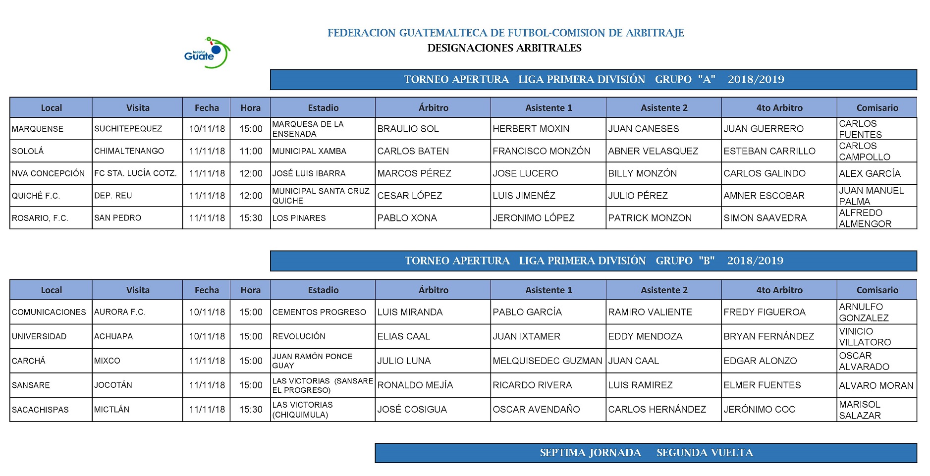 PRIMERA DIVISION / NOMBRAMIENTOS ARBITRALES JORNADA No. 16 / TORNEO APERTURA 2018-2019