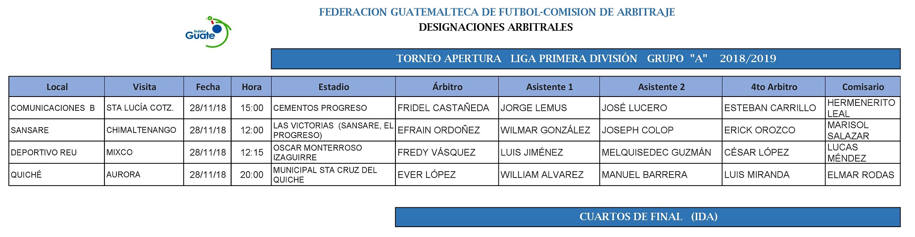 PRIMERA DIVISION / NOMBRAMIENTOS ARBITRALES / CUARTOS DE FINAL (IDA)