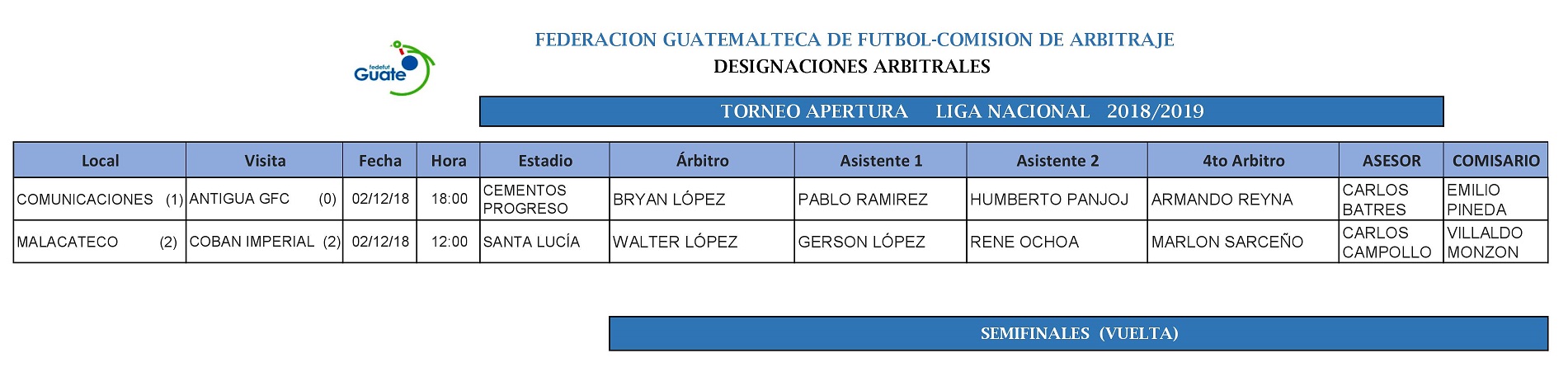 LIGA NACIONAL / NOMBRAMIENTOS ARBITRALES / CLASIFICACION A SEMIFINALES (VUELTA)