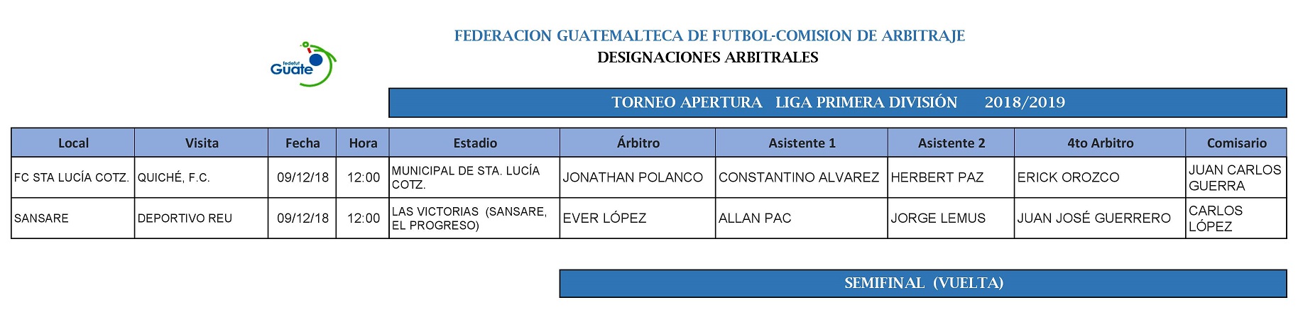 PRIMERA DIVISION / NOMBRAMIENTOS ARBITRALES / FASE SEMIFINAL (VUELTA)