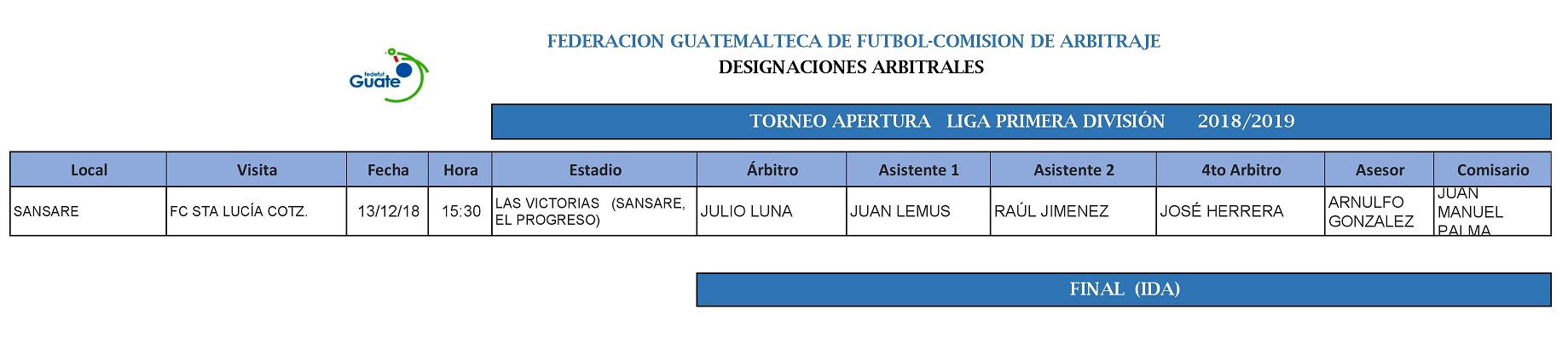 PRIMERA DIVISION / NOMBRAMIENTO ARBITRAL / FINAL (IDA)