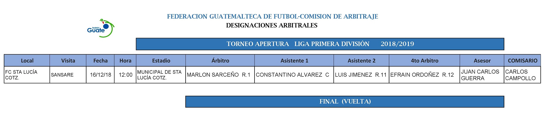 PRIMERA DIVISION / NOMBRAMIENTO ARBITRAL / FINAL (VUELTA)