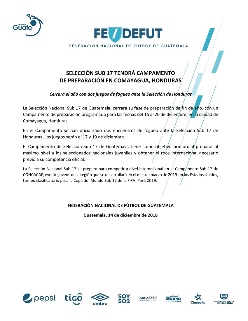 SELECCION SUB 17 TENDRA CAMPAMENTO EN COMAYAGUA, HONDURAS