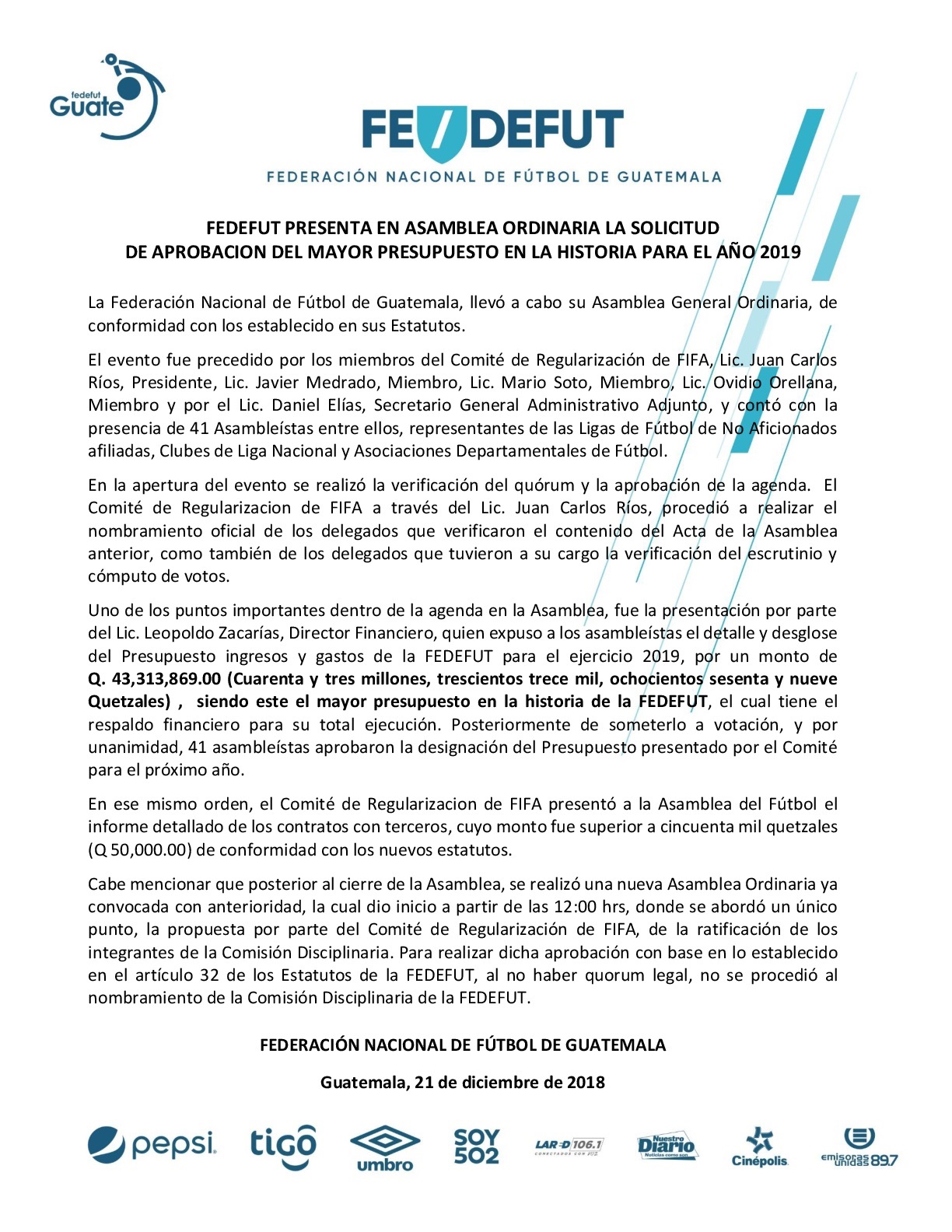 FEDEFUT presenta en Asamblea Ordinaria el mayor Presupuesto en la historia para el año 2019
