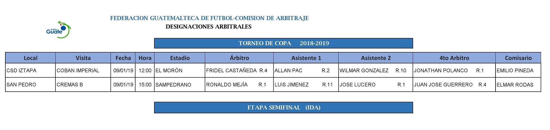 TORNEO DE COPA / NOMBRAMIENTOS ARBITRALES / SEMIFINAL IDA