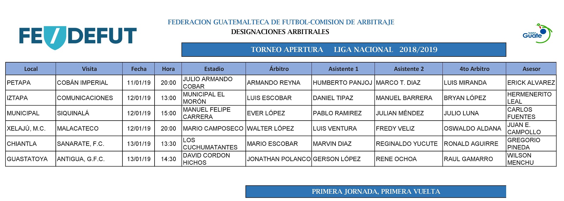 LIGA NACIONAL / NOMBRAMIENTOS ARBITRALES / PRIMERA JORNADA TORNEO APERTURA 2019