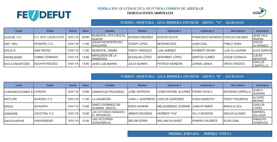 PRIMERA DIVISION / NOMBRAMIENTOS ARBITRALES / PRIMERA JORNADA TORNEO APERTURA 2019