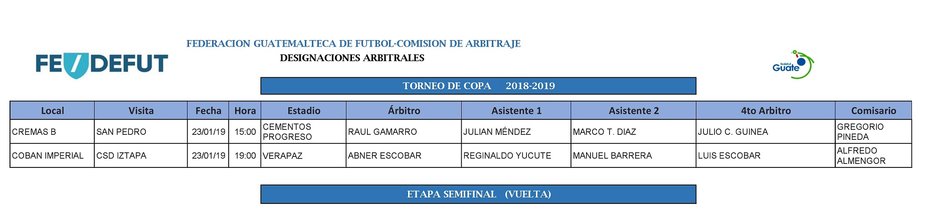 TORNEO DE COPA / NOMBRAMIENTOS ARBITRALES / SEMIFINALES VUELTA