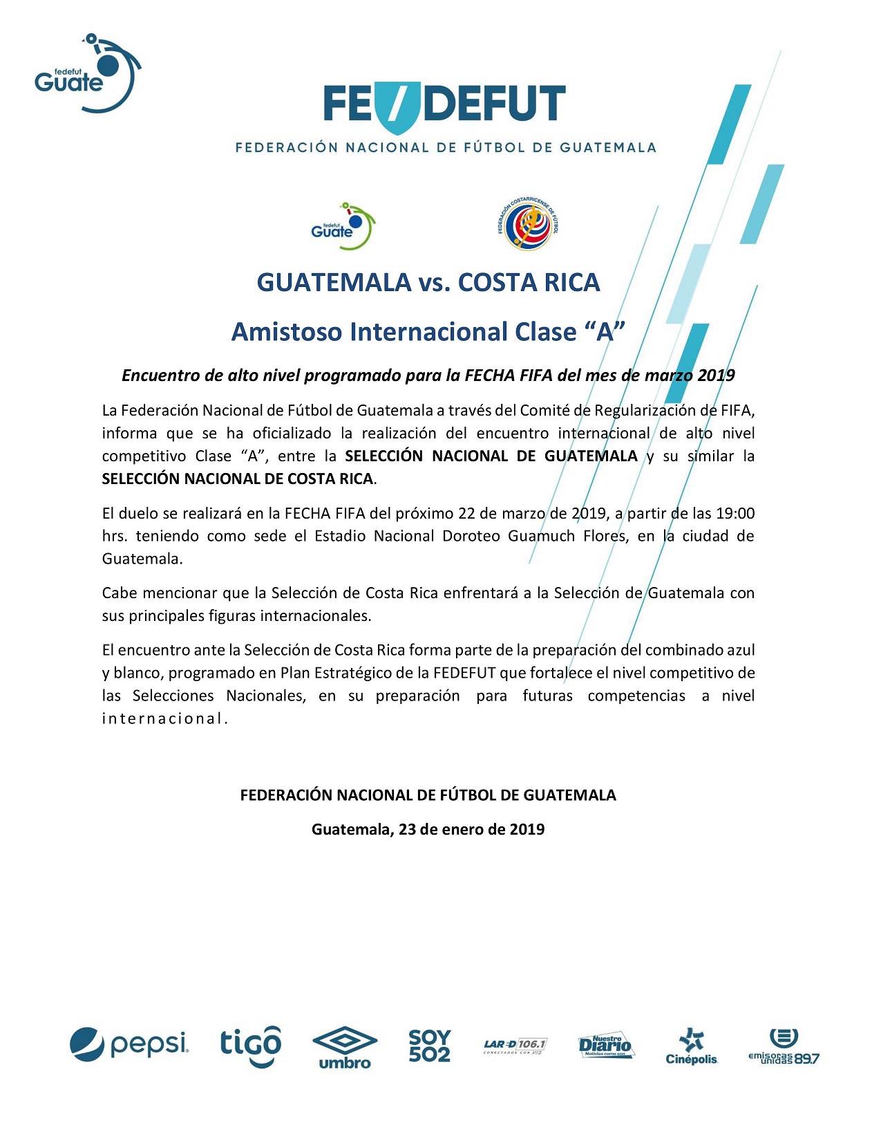 GUATEMALA ENFRENTARA A COSTA RICA FECHA FIFA MARZO 2019