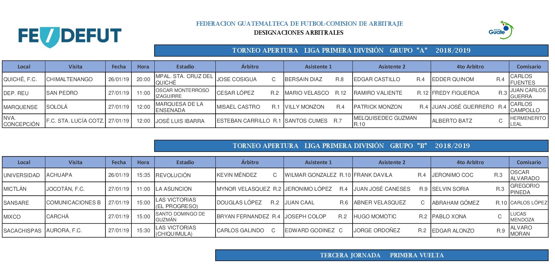 PRIMERA DIVISION / NOMBRAMIENTOS ARBITRALES / TERCERA JORNADA TORNEO APERTURA 2019