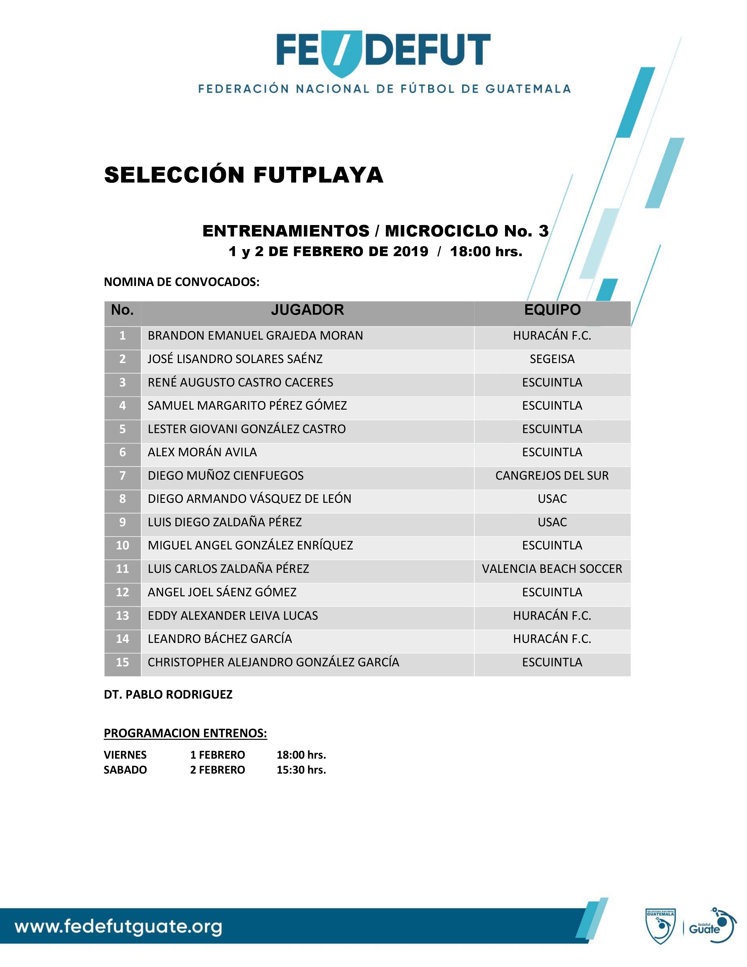SELECCION FUTBOL PLAYA / MICROCICLO No.3 / 1 y 2 DE FEBRERO 2019