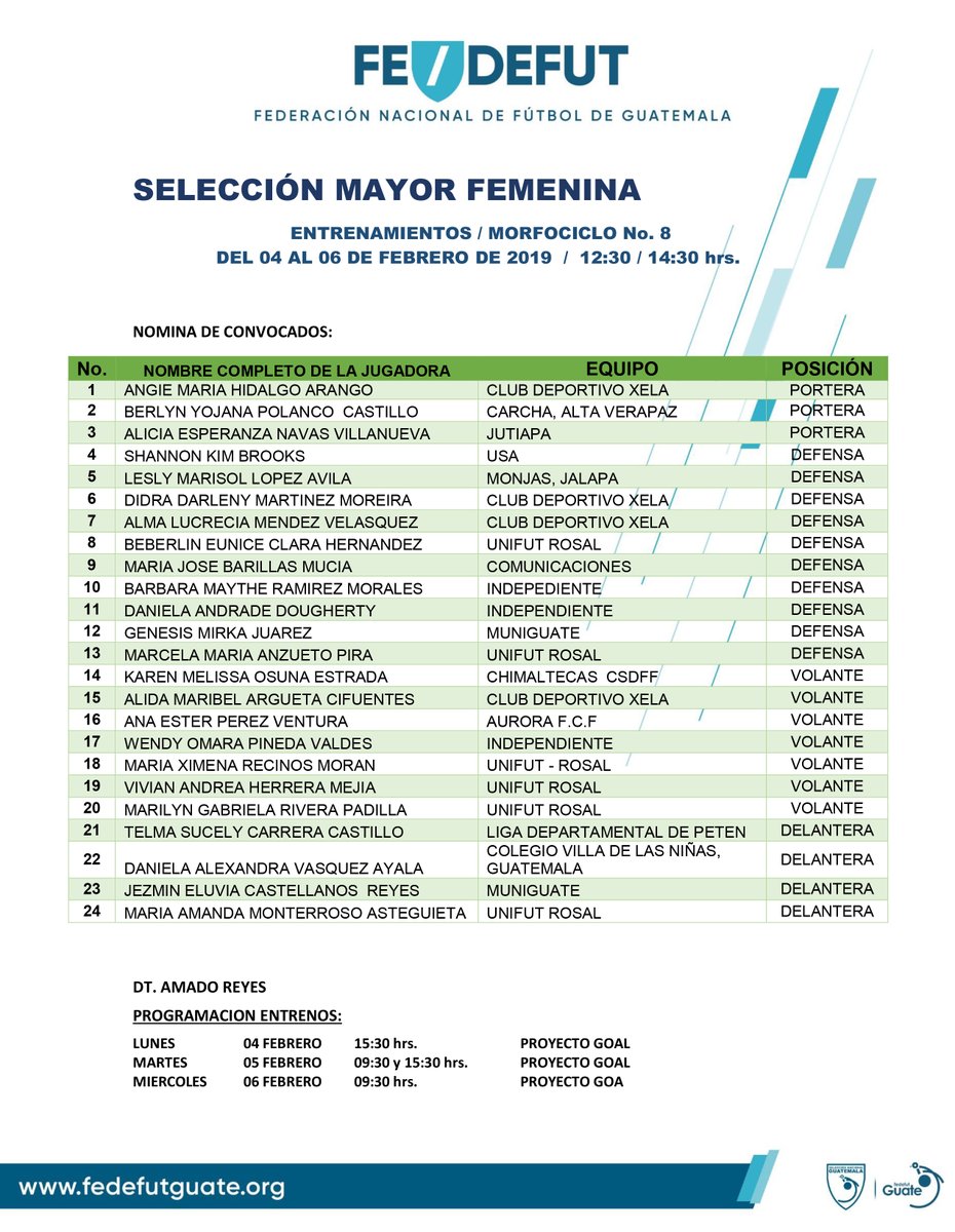 SUB 20 FEMENINA / CONVOCATORIA MICROCICLO No. 2 DEL 6 AL 8 DE ENERO 2020