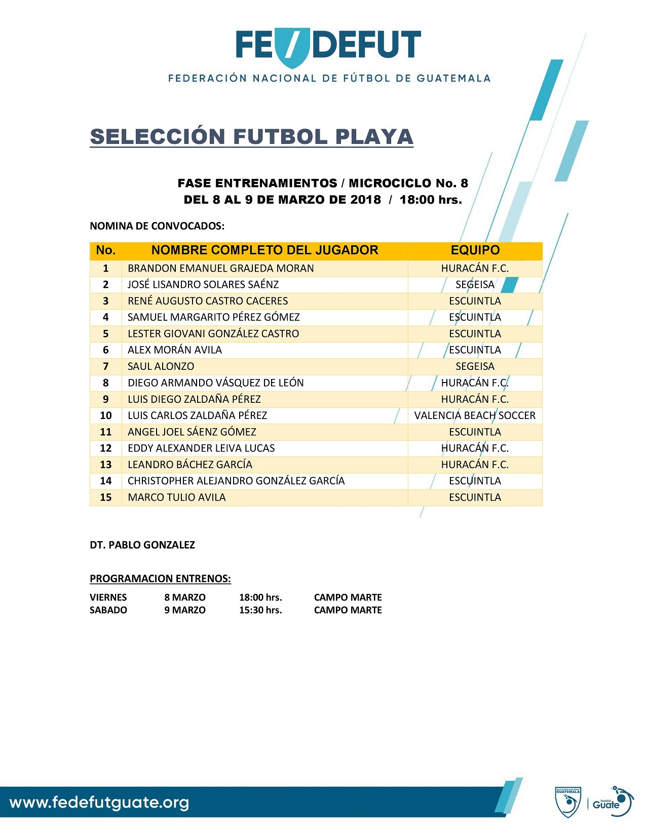 SELECCION FUTBOL PLAYA / MICROCICLO No.8 / 8 y 9 DE MARZO 2019