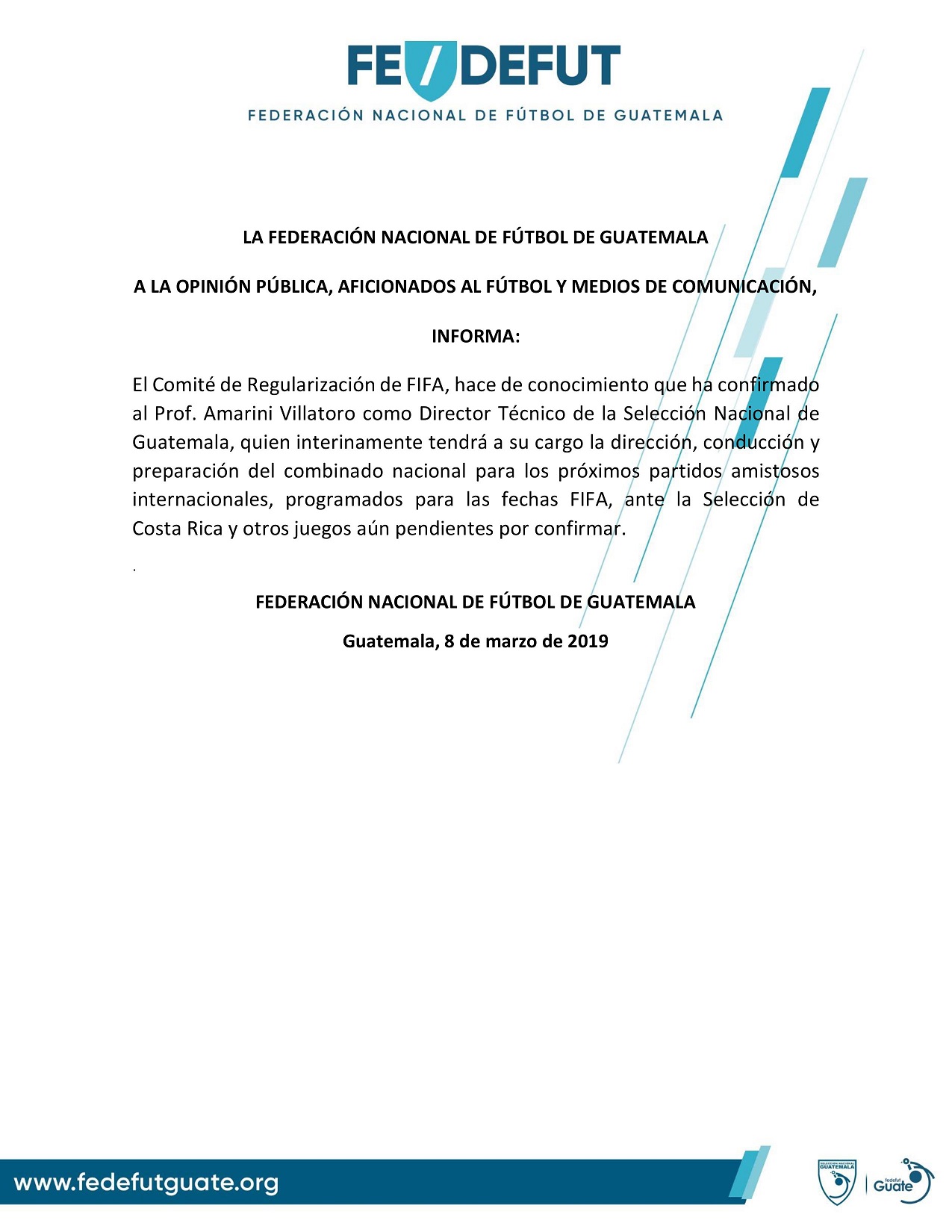 COMUNICADO DE PRENSA / FEDEFUTGUATE