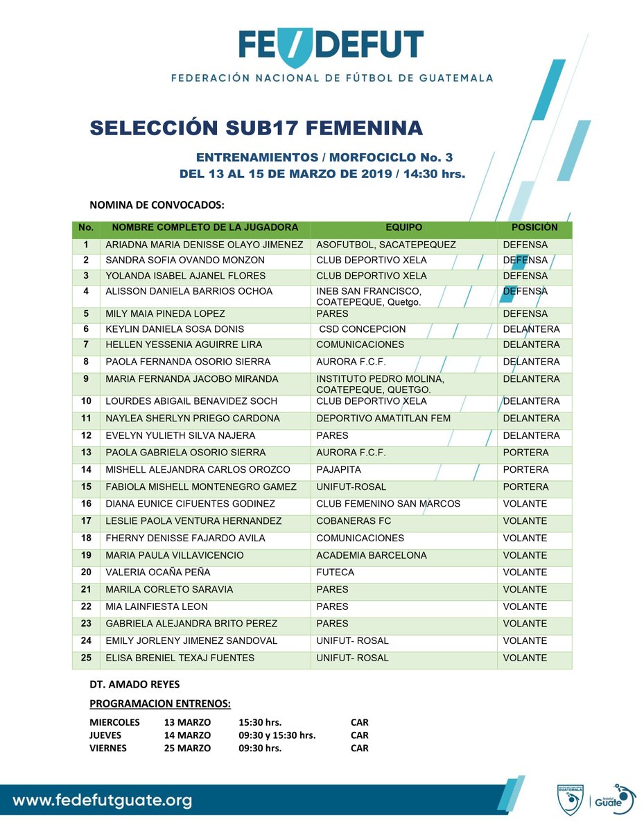 SELECCION SUB 17 FEMENINA / MORFOCICLO No. 3 / 13 al 15 MARZO 2019