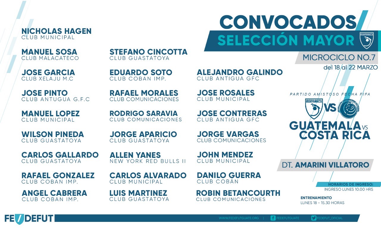 NOMINA OFICIAL SELECCION DE GUATEMALA ANTE COSTA RICA