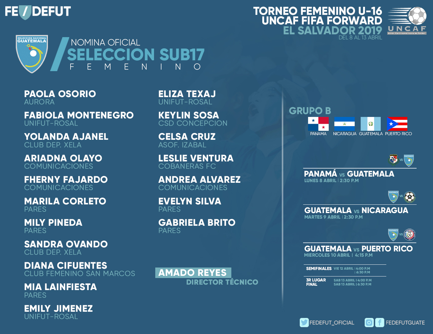NOMINA OFICIAL SELECCION FEMENINA DE GUATEMALA / TORNEO U-16 UNCAF / FIFA FORWARD