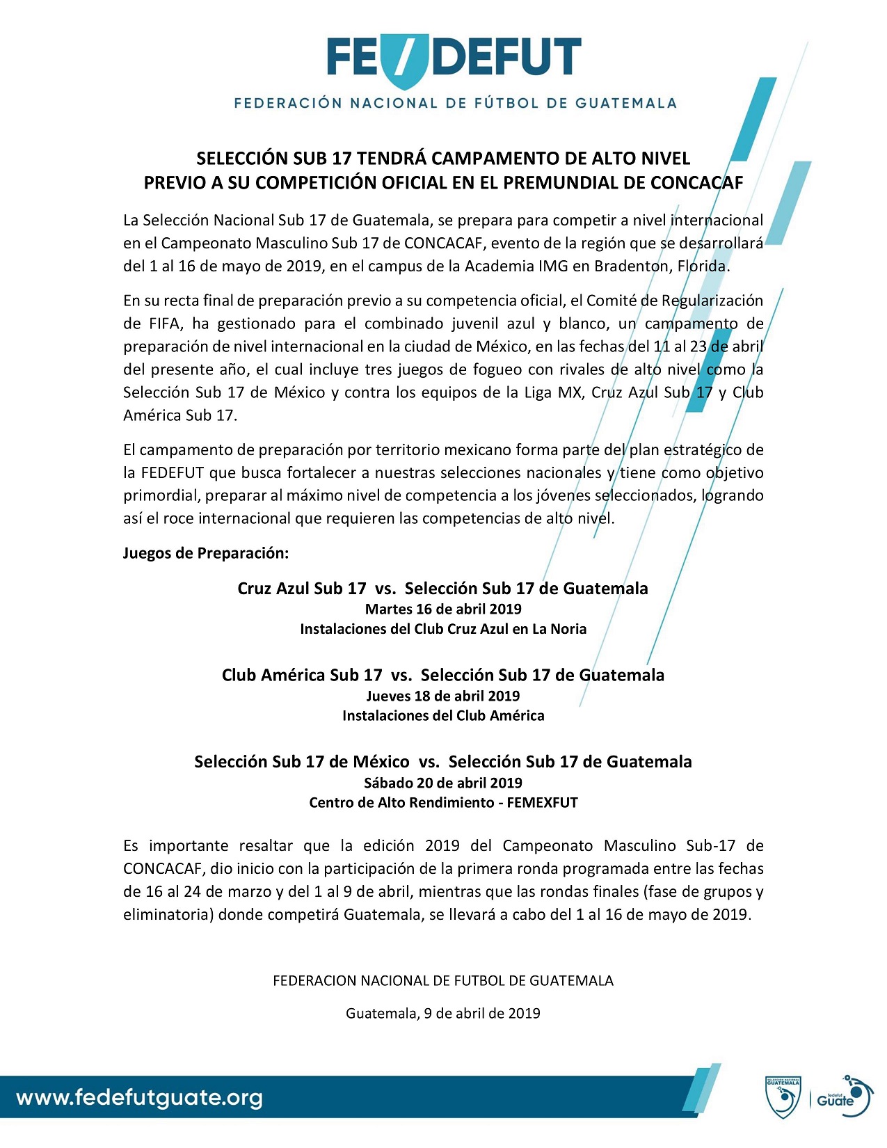 SELECCIÓN SUB 17 TENDRA CAMPAMENTO DE ALTO NIVEL EN MÉXICO