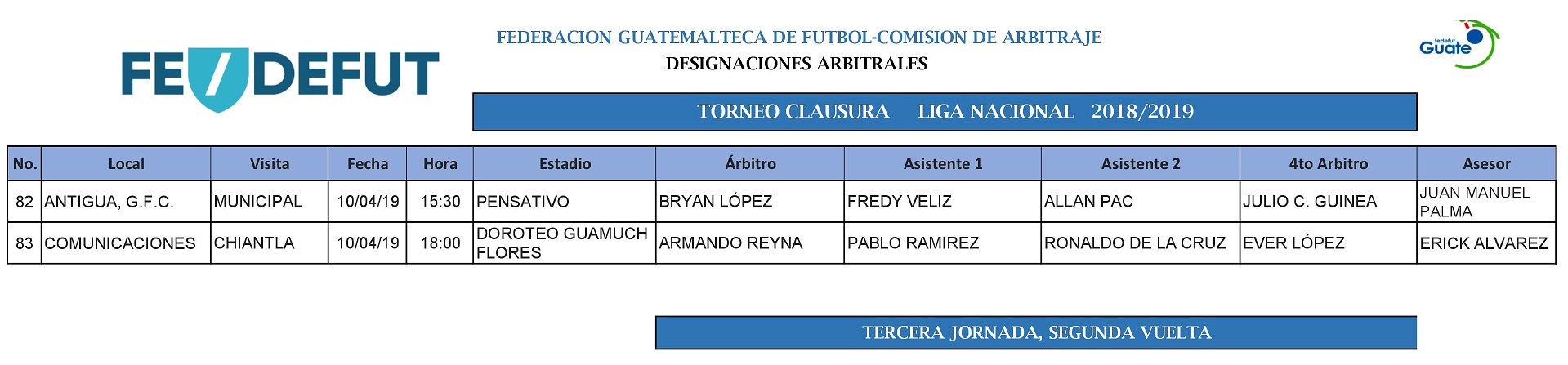 LIGA NACIONAL / NOMBRAMIENTOS ARBITRALES DEL 10 DE ABRIL DE 2019