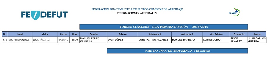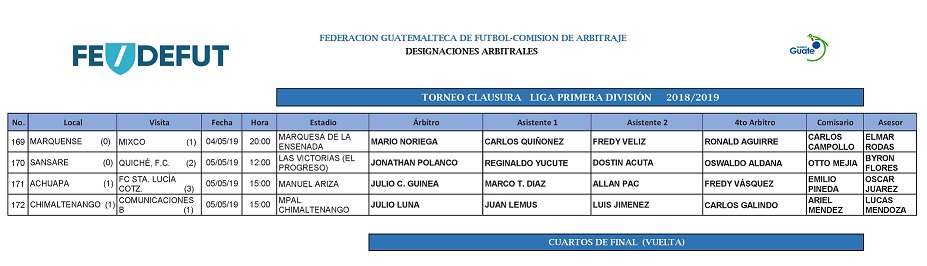 LIGA PRIMERA DIVISION / NOMBRAMIENTOS ARBITRALES JORNADA CUARTOS DE FINAL VUELTA