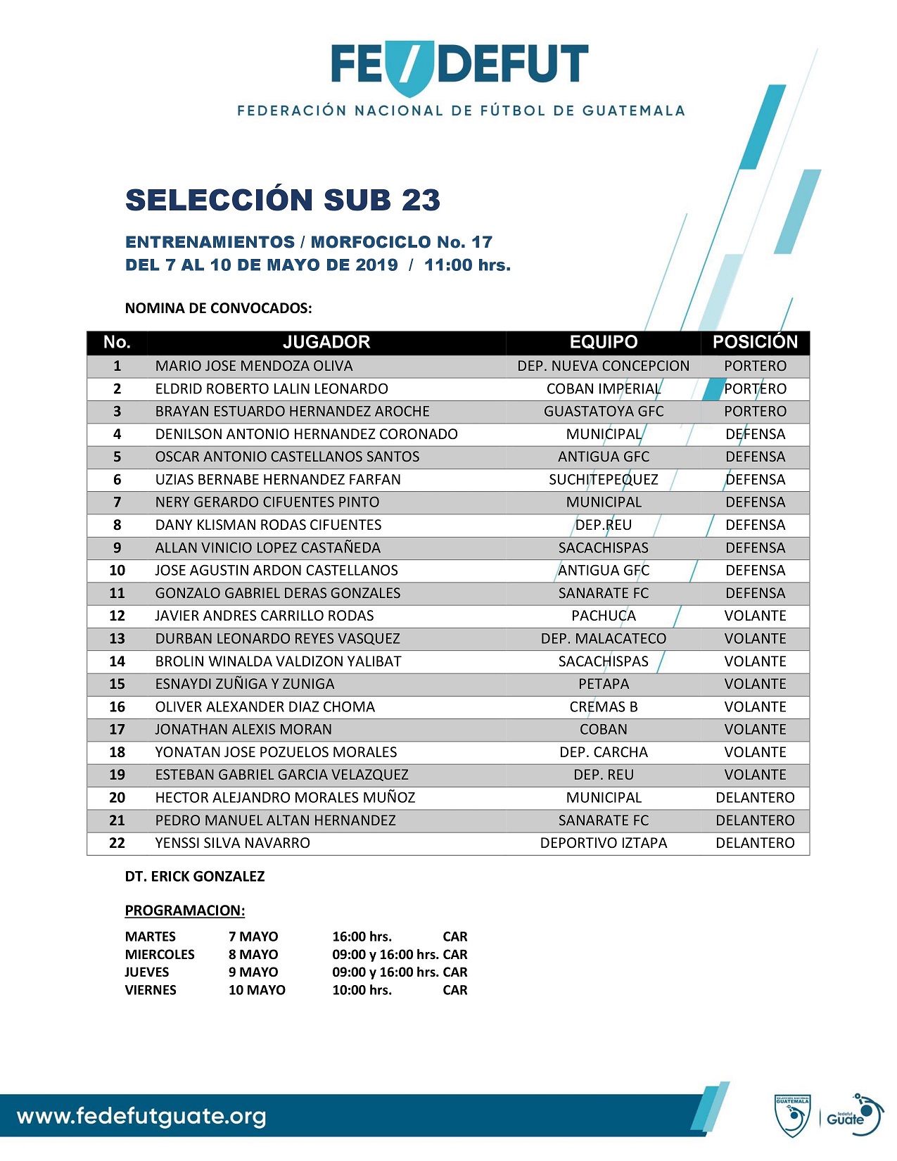 SELECCION SUB 23 / CONVOCATORIA MORFOCICLO NO.17 / DEL 7 AL 10 DE MAYO 2019