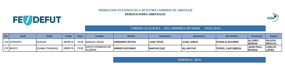 PRIMERA DIVISION / NOMBRAMIENTOS ARBITRALES FASE SEMIFINAL (IDA)