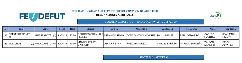 LIGA NACIONAL / NOMBRAMIENTOS ARBITRALES ACCESO A SEMIFINALES (VUELTA)