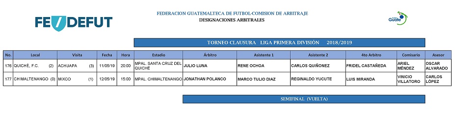 LIGA PRIMERA DIVISION / NOMBRAMIENTOS ARBITRALES FASE SEMIFINAL (VUELTA)