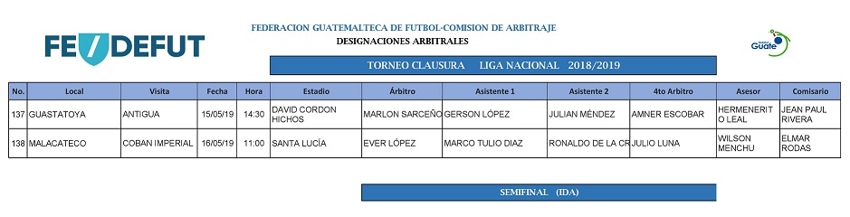 LIGA NACIONAL / NOMBRAMIENTOS ARBITRALES SEMIFINAL IDA
