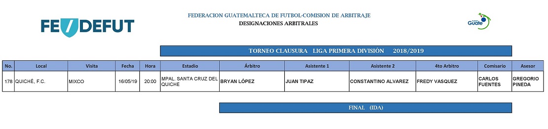 LIGA PRIMERA DIVISION / NOMBRAMIENTOS ARBITRALES FINAL IDA