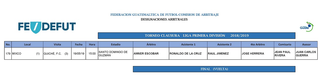 PRIMERA DIVISION / NOMBRAMIENTO ARBITRAL FINAL VUELTA