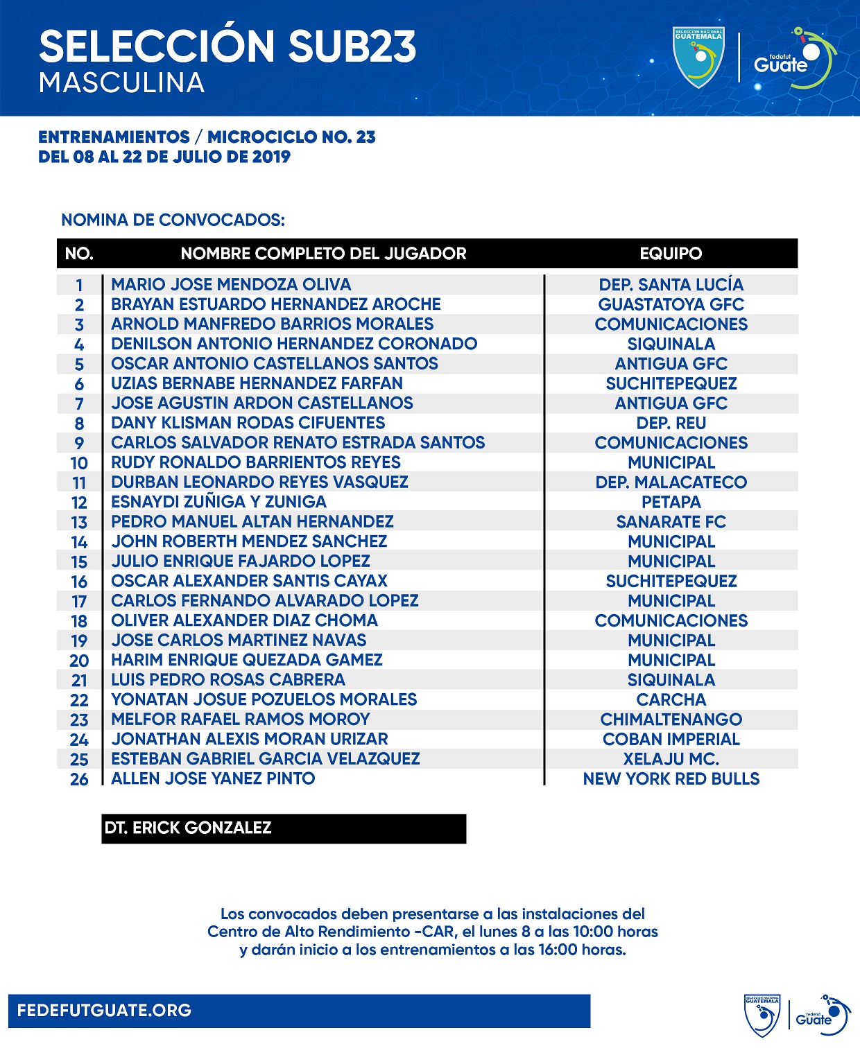 SELECCION SUB 23 / CONVOCATORIA MORFOCICLO NO.23 / DEL 8 AL 22 DE JULIO 2019