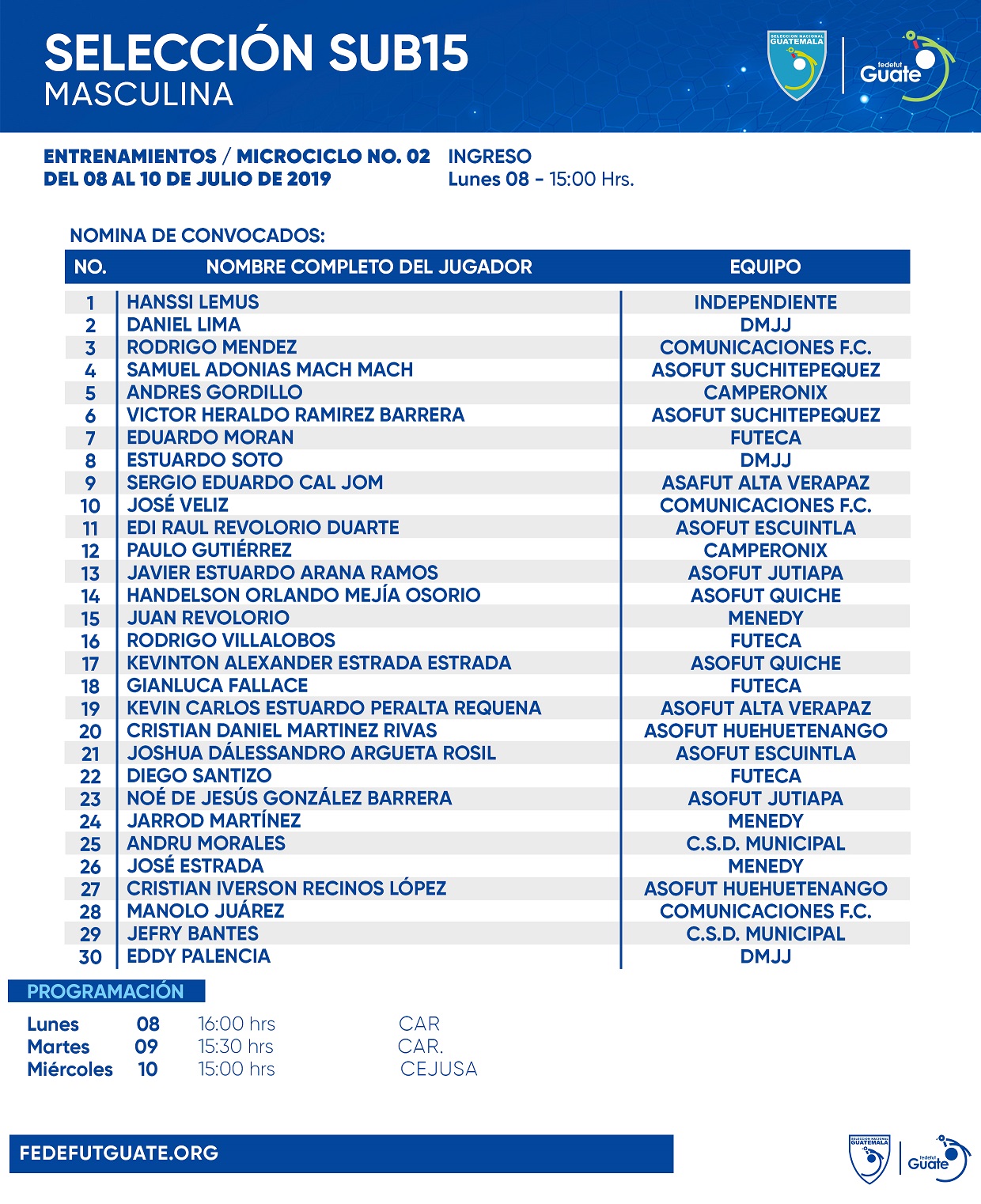 SELECCION SUB 15 / CONVOCATORIA MORFOCICLO NO.2 / DEL 8 AL 10 DE JULIO 2019