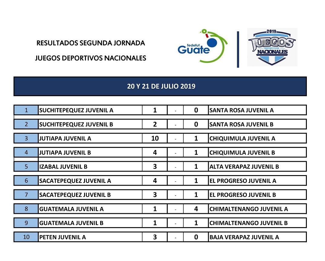 JUEGOS DEPORTIVOS NACIONALES FEDEFUT 2019 / RESULTADOS SEGUNDA JORNADA
