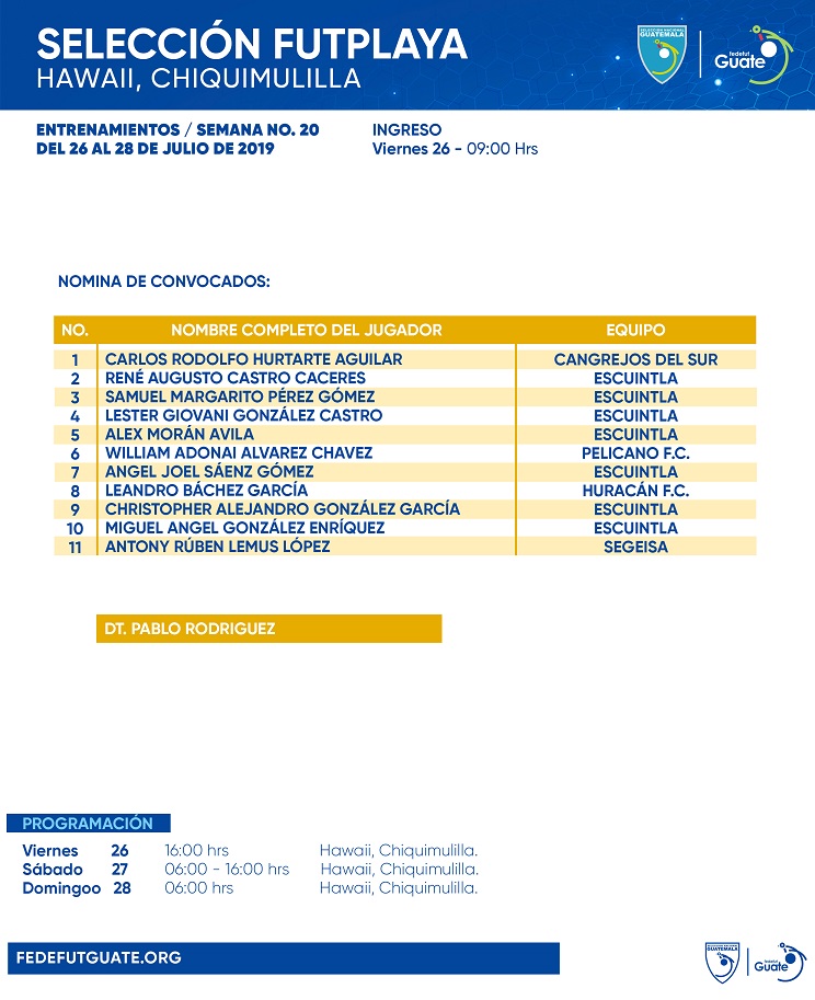 SELECCION FUTBOL PLAYA / MICROCICLO No.20 / 26 AL 28 DE JULIO 2019