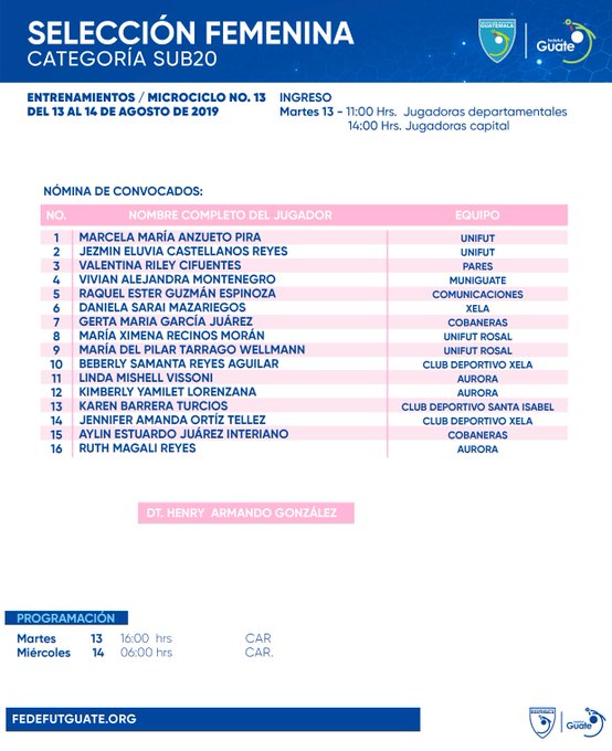 SUB 17 FEMENINA / CONVOCATORIA MICROCICLO No. 1 DEL 13 AL 15 DE ENERO 2020