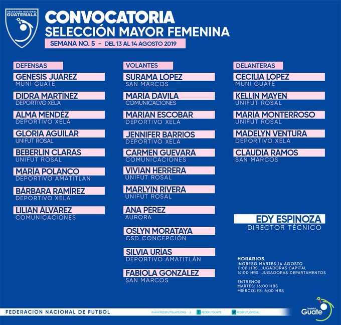 SUB 17 FEMENINA / CONVOCATORIA MICROCICLO No. 1 DEL 13 AL 15 DE ENERO 2020