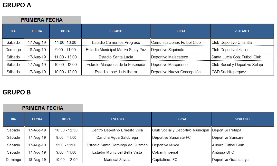Guatemala, 14 de agosto de 2019. El primer CAMPEONATO NACIONAL DE CATEGORÍAS JUVENILES es organizado por la Federación Nacional de Fútbol de Guatemala, con el apoyo del Programa Forward de FIFA, Torneo de desarrollo donde participarán los 12 clubes de la Liga Nacional y 8 clubes de la Liga Primera División de No Aficionados.