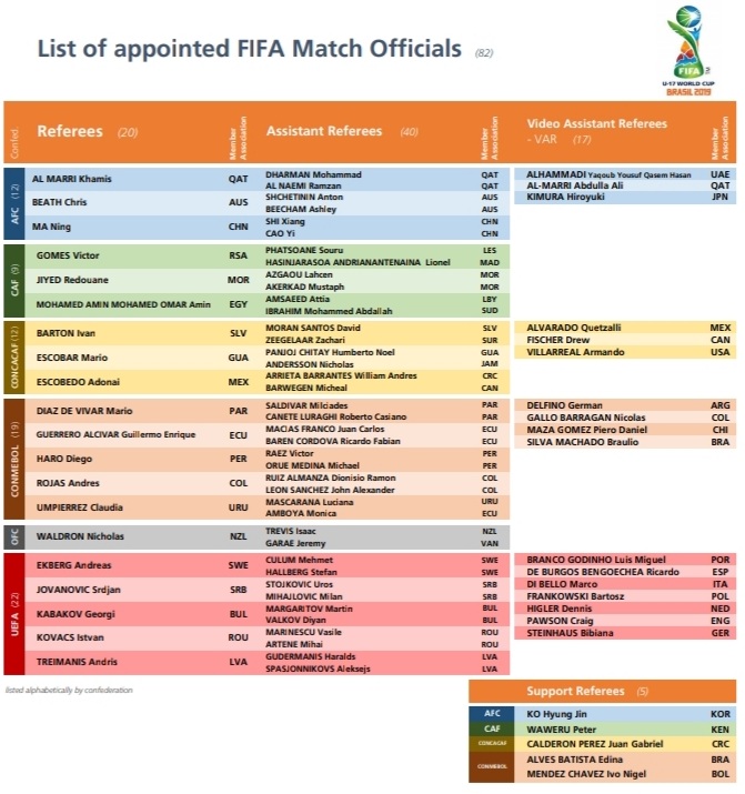 Listado oficial de árbitros para el Mundial Sub 17 FIFA 2019