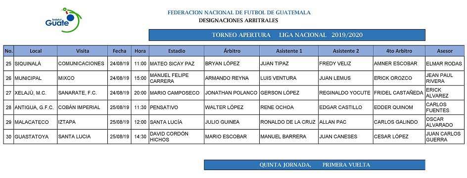 LIGA NACIONAL / NOMBRAMIENTOS ARBITRALES QUINTA JORNADA TORNEO APERTURA
