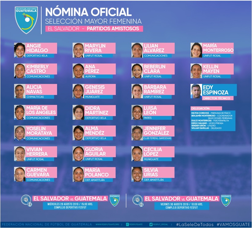 La nómina oficial de Selección Mayor Femenina de Guatemala es la siguiente: