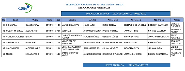 LIGA NACIONAL / NOMBRAMIENTOS ARBITRALES SEXTA JORNADA TORNEO APERTURA